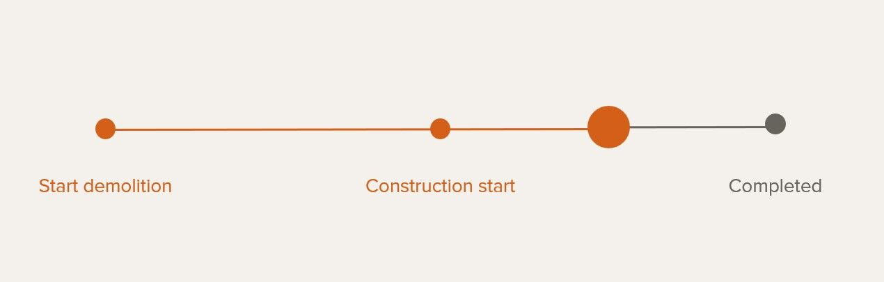 In week 43, the roof will be completed, and work on the partition walls has begun.
