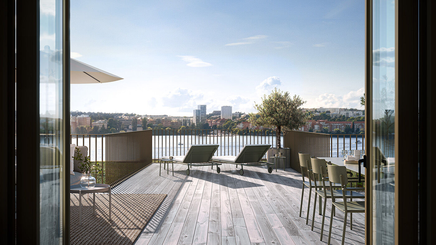 The penthouses have spacious terraces with the option of an outdoor kitchen and hot tub. Here you can enjoy sunlight from morning to evening, relax with a book, or create a lush oasis with plants and herbs. There is plenty of space for cosy summer coffees and wonderful parties, all with a fantastic view over the water, city and greenery, with the light flowing freely into your home.